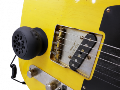 Mounting to your guitar using a rubber suction cup, the Strum Buddy is a 6W guitar amplifier, powered by an internal rechargeable battery. It not only lets you hear and monitor your electric guitar, but allows you to play through the onboard guitar effect sounds, such as distortion, chorus and reverb.